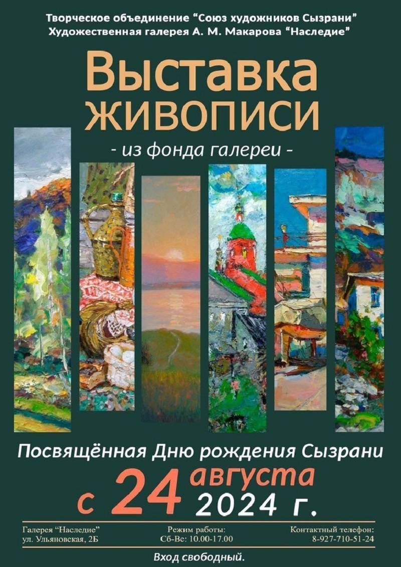 Свой подарок сызранцам ко Дню города преподнесла галерея «Наследие» мецената Александра Макарова - 24 августа там открылась Выставка живописи из собственного фонда галереи. Как ни странно, но в вернисаже нет ни сызранских художников, ни видов Сызрани. Галерея решила показать свои лучшие картины ради красивого подарка горожанам. Это действительно подарок - получить эстетическое удовольствие, организовав себе, друзьям и близким прекрасный культурный досуг за просмотром отличных картин может любой желающий совершенно бесплатно. Проникнуться живописью, открыть для себя новые имена - у галереи действительно есть, что показать.