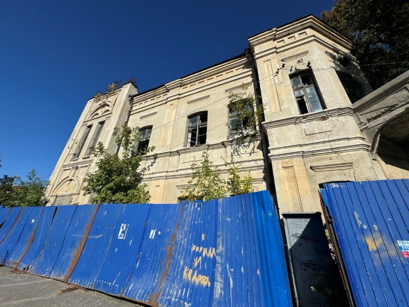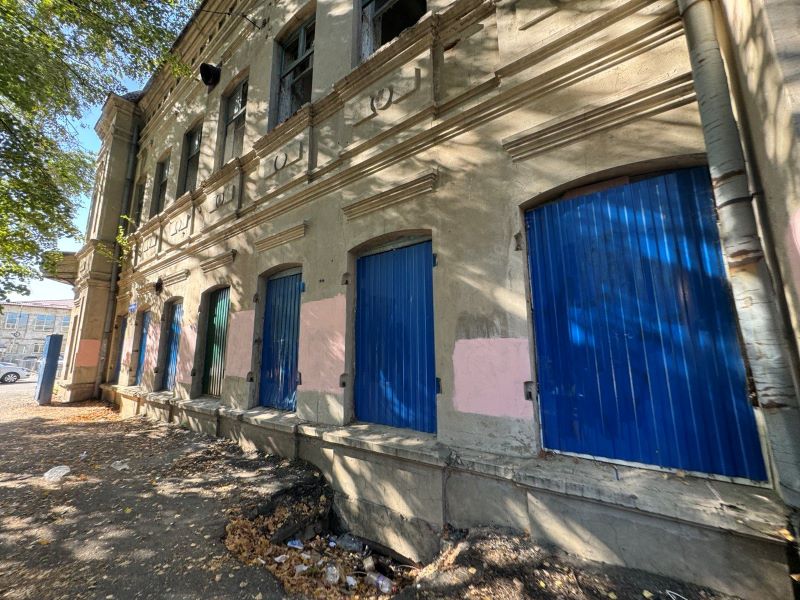 Здание, стоящее по адресу ул.Карла Маркса, 91, прямо между администрацией города и драматическим театром, уже много лет обнесено забором из синего, местами погнутого, профлиста. Таким же профлистом не так давно были закрыты окна здания. Скорее всего от проникновения лиц без определённого места жительства. Несколько раз в особняке происходили пожары, возможно, именно по вине таких лиц.