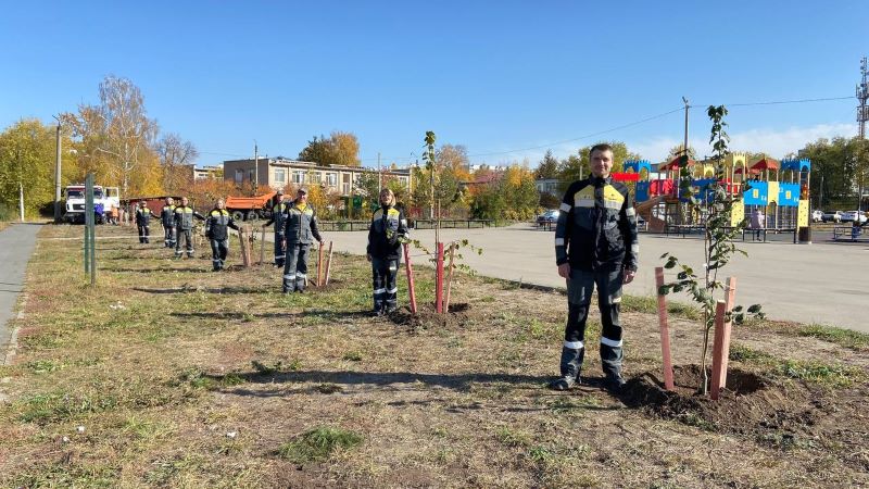 Нефтяники высадили у сызранской школы 20 саженцев мелколистной липы