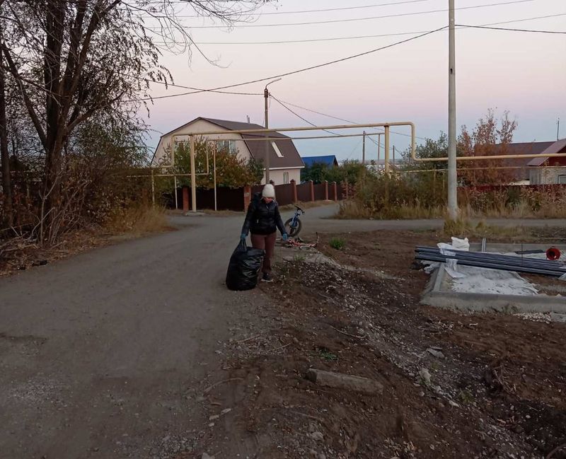 коврик. А инициативная группа жителей микрорайона вышла на субботник: