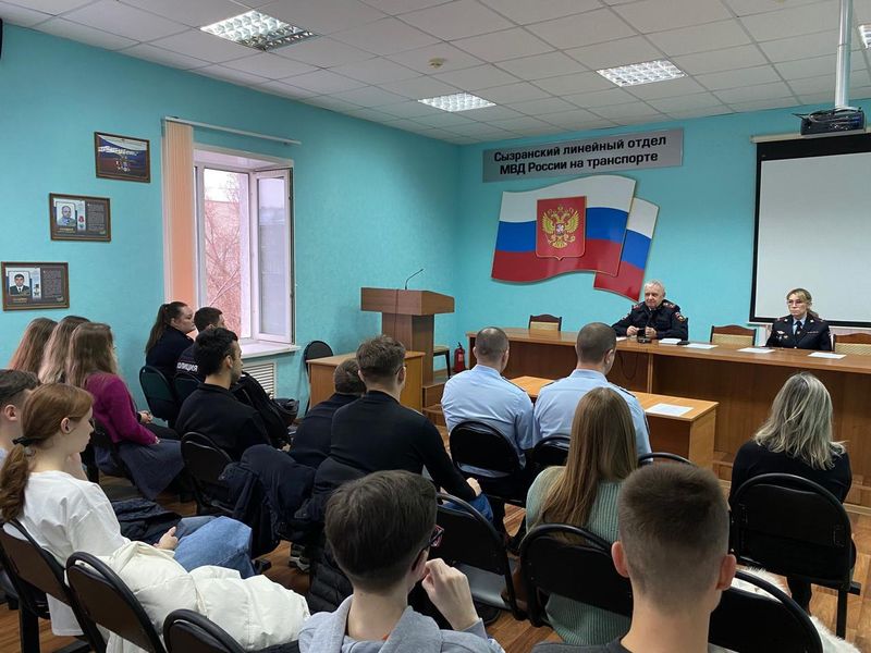 Сотрудники Сызранского линейного отдела МВД России на транспорте провели познавательную экскурсию для студентов. К полицейским пришли студенты 2 курса Сф СГЭУ. Их встретил начальник Сызранского ЛО МВД России на транспорте полковник полиции Рамиль Байгулов. Он познакомил студентов с историей линейного отдела, рассказал об основных направлениях деятельности транспортных полицейских. Студенты узнали, как можно пройти стажировку и учебную практику в линейном отделе, о требованиях при отборе в образовательные учреждения, а также о льготах и гарантиях при обучении в ведомственных учебных заведениях высшего профессионального образования в системе МВД России.
