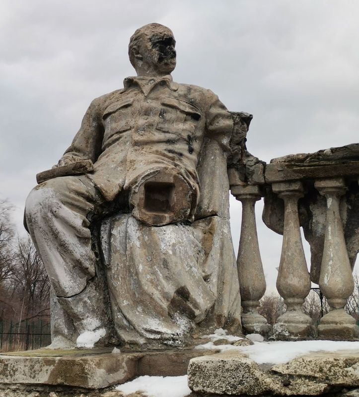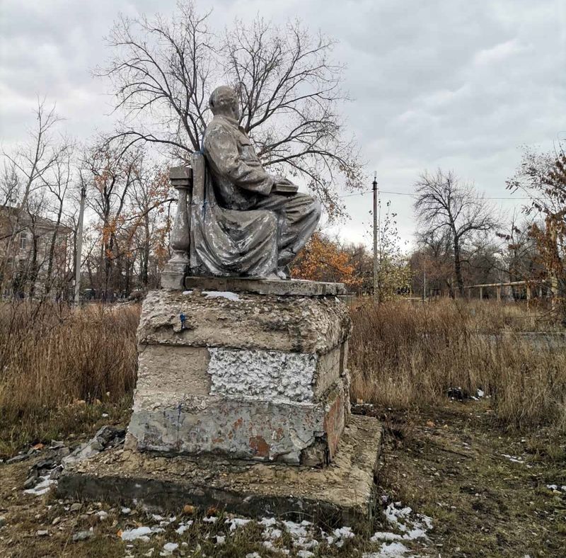 фото жителей. У сидящего у балюстрады Ильича разбито лицо, оторвана