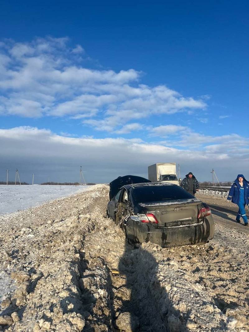 В Сызранском районе недалеко от города произошло ДТП. Сегодня в 11:23 на участке трассы М-5 на подъезде к перекрестку на Ульяновск произошла авария - столкнулись сразу три автомобиля. В ДТП попали Газель, Tayota Comry и Datsun. Как видно из опубликованных фото, у последнего отчетливо видны повреждения на крыше, какие бывают, если автомобиль переворачивается.