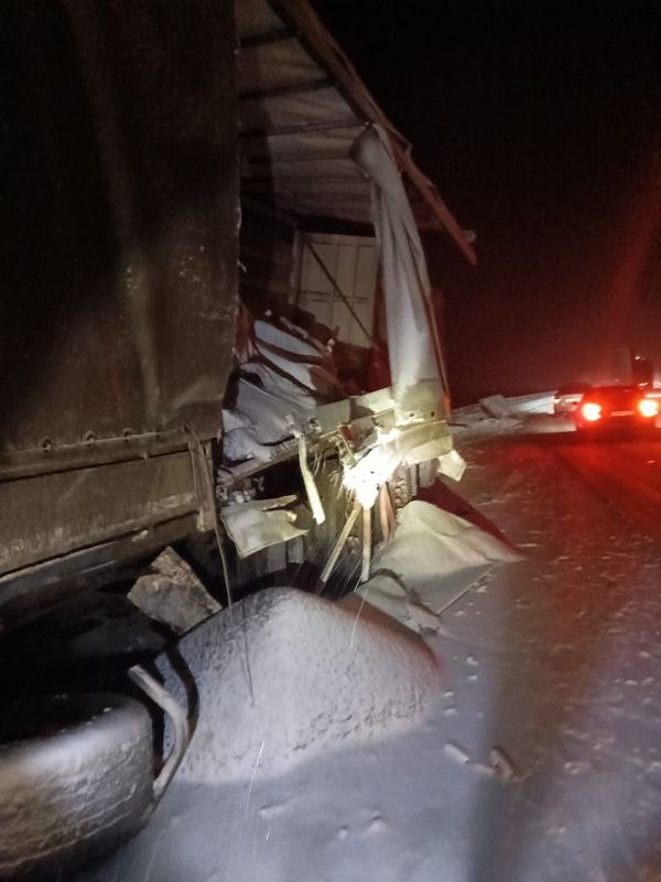Как сообщили в полиции, один из большегрузов занесло.