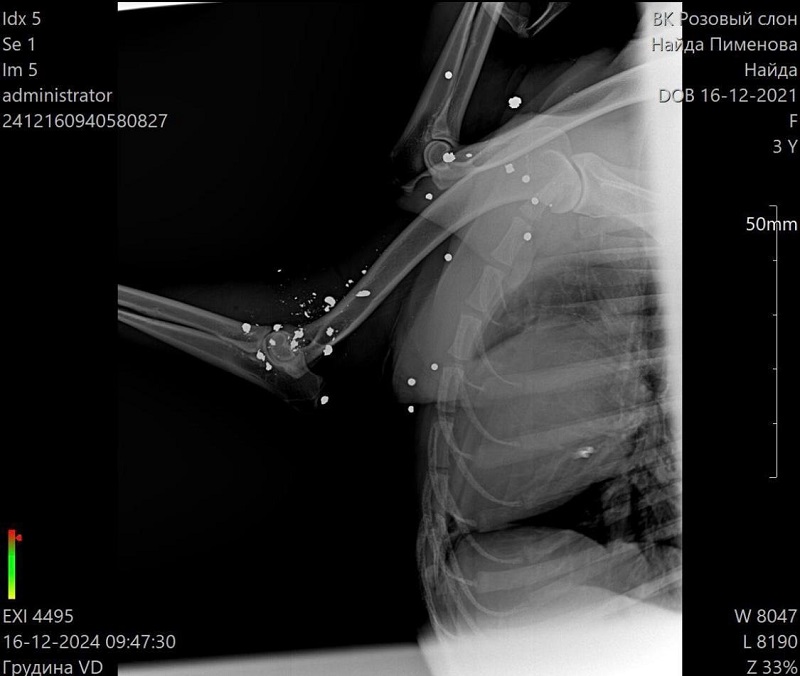Получила продолжение история о собаке, которую неизвестный живодер буквально расстрелял на дороге в районе села Троекуровка. Несмотря на испытание, которая ей уготовила судьба, собака выжила, и те, кто сейчас занимается ее спасением, не опускают рук - борются за жизнь четвероногого друга. В Найду вошло более 30 пуль, одна из которых находится в очень опасном месте - в кармане сердца. И семье, выхаживающей несчастное животное, стоило усилий найти хирурга, который возьмется её оперировать. Однако, согласившийся ветеринар нашелся в Самаре, и на 9 января Найде назначена операция.