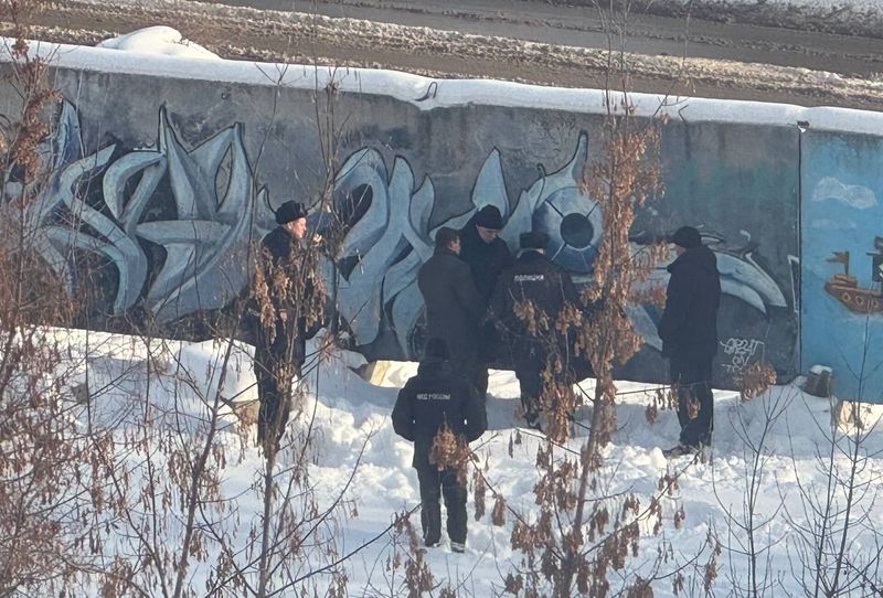 Следствие продолжается. На фото - момент следственного эксперимента с первым задержанным, он показывает, как бил свою жертву и как уходил с места преступления, бросив человека умирать.