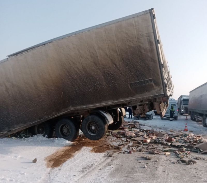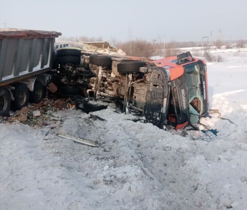 Сегодня утром на трассе в Сызранском районе жестко столкнулись две фуры: прибывшие на место пожарные-спасатели сообщили о пострадавшем водителе, которому потребовалась срочная госпитализация, и поделились первыми фото с места происшествия. О ДТП стало известно в 09:36. На 923 км трассы М-5 столкнулись большегрузы SCANIA и DAF: одна фура везла щебень, а вторая - фруктовый сок. Ранения получил водитель SCANIA, скорая доставила его в Сызранскую больницу. Прибывшие на место спасатели ПСО 47 ППС региона отключили аккумуляторные батареи повалившейся на бок SCANIA и сохранившего равновесие DAF. На месте работали также сотрудники территориальной Госавтоинспекции, они выясняли, по какой причине столкнулись две фуры.