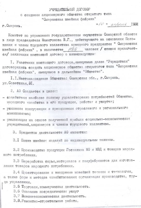 лет артель выросла до уровня швейного комбината, открыла в Сызрани три