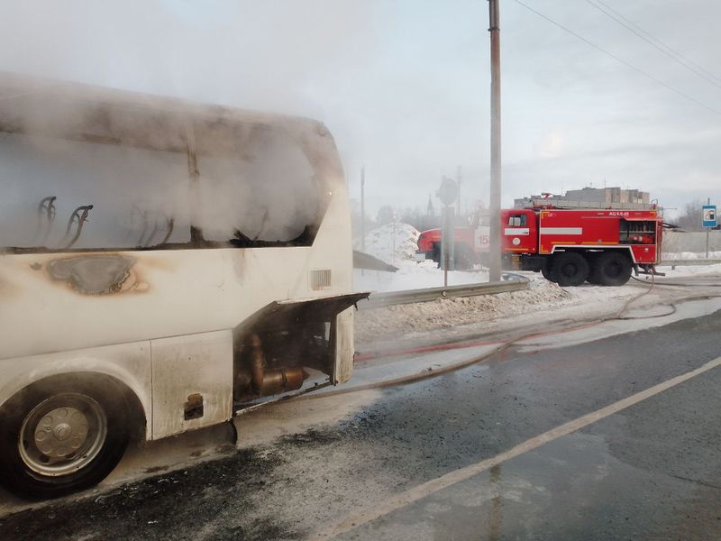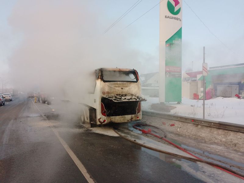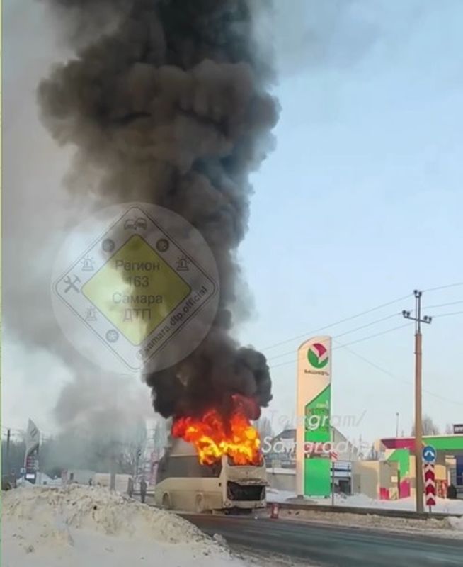 Сегодня утром в Самарской области на полном ходу загорелся пассажирский автобус. ЧП произошло около автозаправочной станции, на въезде в Самару в районе поселка Стройкерамика. Очевидцы сняли бьющее из салона автобуса пламя и поднимающийся на десятки метров в небо густой черный дым. На место прибыли спасатели ПСЧ № 158 ПСО 46. В данном происшествии никто не пострадал - кроме самого автобуса, он практически весь выгорел. Когда автобус потушили, спасатели отключили аккумуляторные батареи- точнее, то, что от них оставило пламя. На месте работали также сотрудники территориальной Госавтоинспекции и медработники.