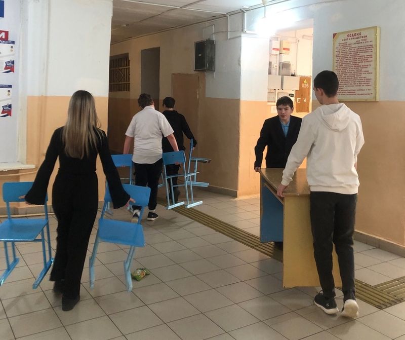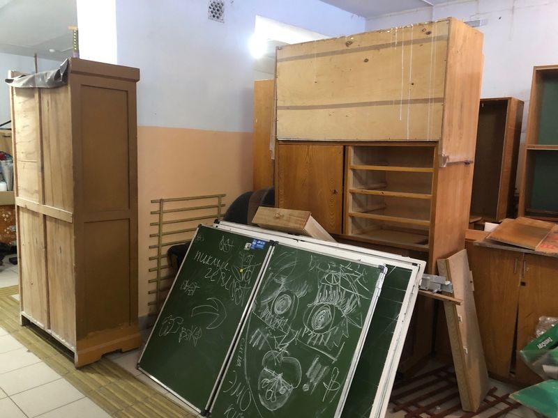 школы парты и другую мебель, оборудование, освобождали лабораторию и