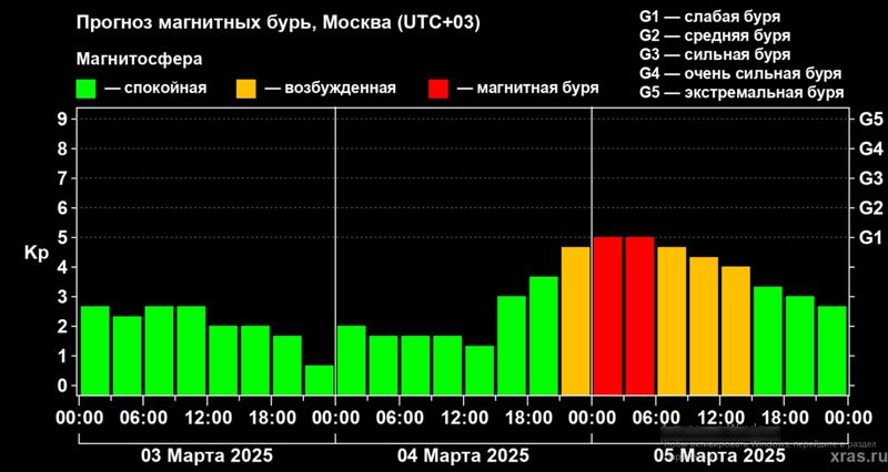на 5 марта ожидаются магнитные бури умеренной силы. Основным фактором,
