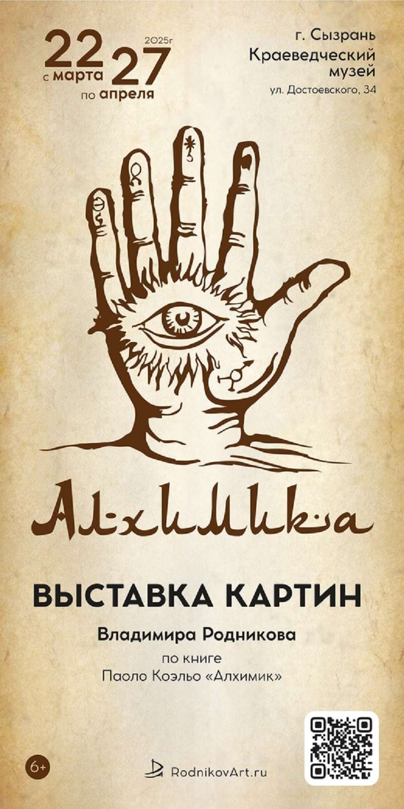 К открытию нового интерактивного проекта готовится Сызранский краеведческий музей: с 22 марта, в дни весенних каникул, в его стенах стартует необычная выставка яркого и талантливого сызранца Владимира Родникова. Выставка его работ называется «Алхимика» - это эмоциональный отклик художника на известный роман Пауло Коэльо. Картины Родников написал зимой 2023-2024 годов. Большая часть работ этой серии уже находится в частных коллекциях, но владельцы предоставили их для демонстрации в рамках персональной выставки художника.
