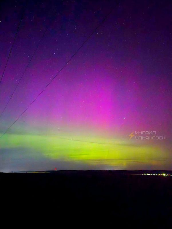красивое полярное сияние - его вызывают сильные магнитные бури.
