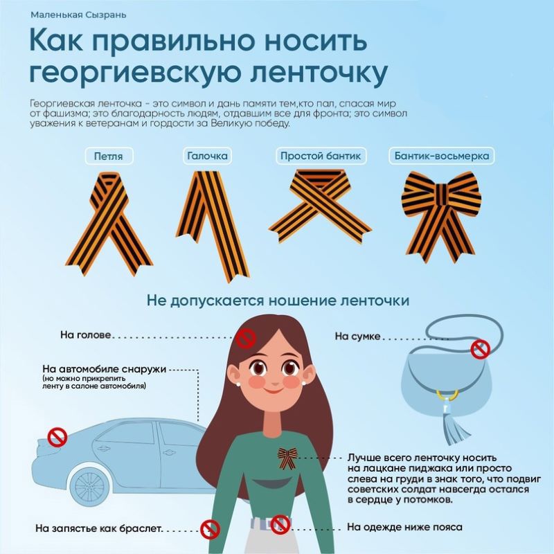 В Сызрани сегодня стартует акция «Георгиевская лента» - как правильно носить ленту