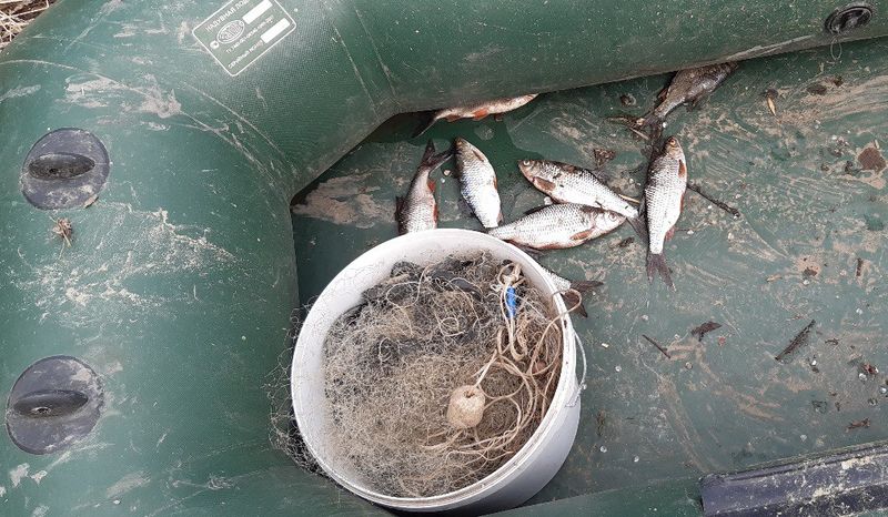Сотрудниками полиции с места происшествия изъяты сеть, резиновая лодка, принадлежащие обвиняемому, и рыба.