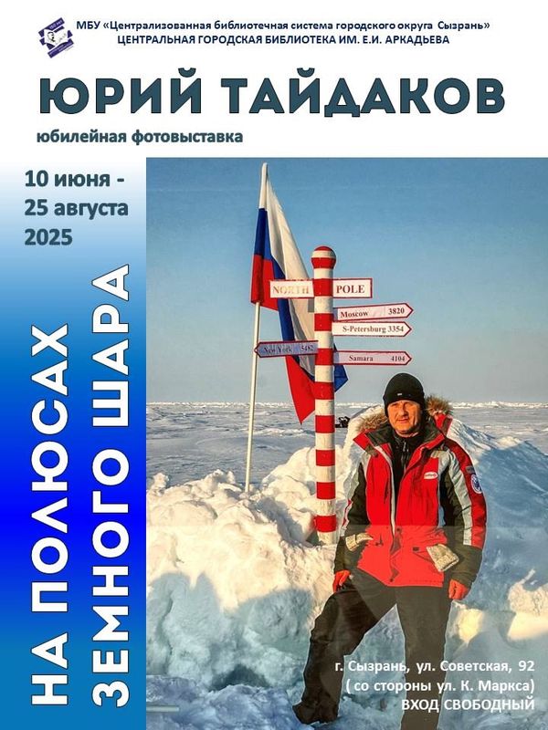 В Сызрани праздничные мероприятия в честь Дня России (6+) начнутся 10 июня двумя концертами в школах искусств имени Островского и ДШИ №3. Юбилейная фотовыставка Юрия Тайдакова - предпринимателя, альпиниста, путешественника и фотографа откроется в Центральной библиотеке Сызрани 10 июня в 14 часов - вход на выставку  «На полюсах земного шара» (6+) свободный, она будет работать до 25 августа.  В течение праздничного и выходных дней концерты и встречи пройдут в домах культуры Сызрани, в парках отдыха и библиотеках города; торжества, линейки, игры - в детских оздоровительных лагерях. Так, например, 11 июня в 10 часов в лагере «Отдых» пройдет флешмоб «Российское знамя». В 18 часов в драматическом театре - литературно-музыкальная композиция «Песни Победного мая» (6+). Но главные мероприятия праздника (6+) пройдут на Кремлевской набережной 12 июня, с 16 до 20 часов.