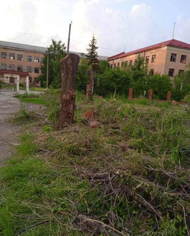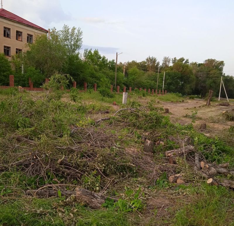 Рабочие не только спилили деревья, но уже вывезли ветки и мусор. На месте будущей аллеи располагалась заброшенная трасса водоснабжения, на «ветке» были установлены вышедшие уже из строя емкости для воды. Их демонтировали, ямы засыпали песком, территорию заровняли.