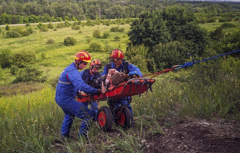 На специальных носилках пострадавшего спустили со склона горы. На