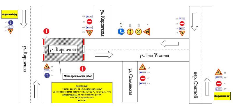 Спил и обрезка разросшихся деревьев будет производиться несколько часов. В связи с этим жителям города стоит спланировать свой маршрут заранее. Перекрытие дороги согласовано с Госавтоинспекцией. При приближении к участку будут выставлены дорожные знаки. Объезд будет возможен через район «Горшки», по улице Архангельской, Гончарным улицам, рядом с СОШ №38 или в объезд. Схема выставления знаков будет выглядеть так: