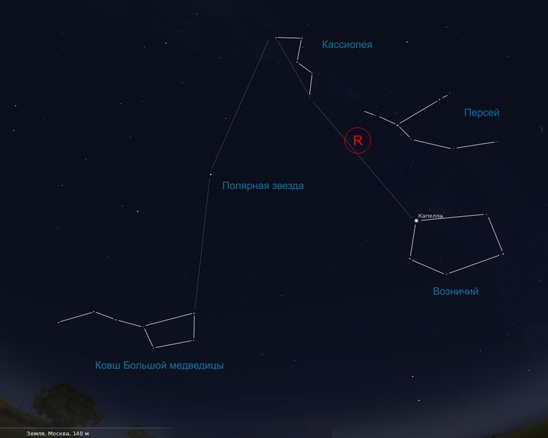 наблюдений пристально смотреть на созвездие Персея (тот радиант, из