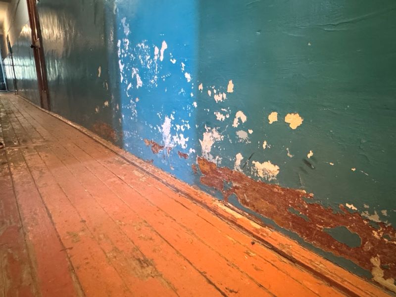 - Очень рады ремонту фасада. Ровно 20 лет прошло с момента прошлого ремонта, но краска тогда быстро облетела. Надеемся, что в этот раз продержится дольше. Внутри дом выглядит печально. Ремонтируем дыры в единственном подъезде и красим полы сами, - с грустной улыбкой рассказывает горожанка. Действительно, следов работы управляющей компании тут не видно.