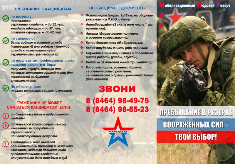 Требования к кандидатам в состав мобилизационного людского резерва.