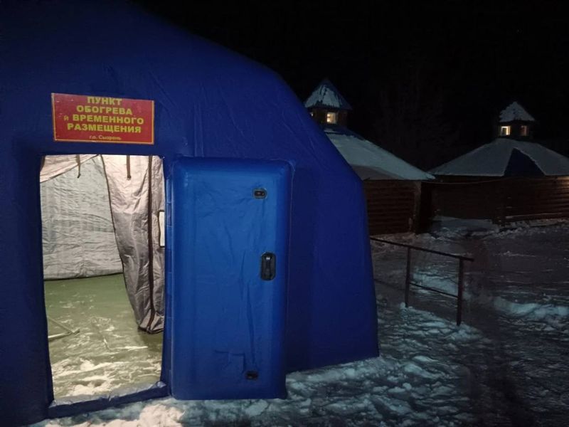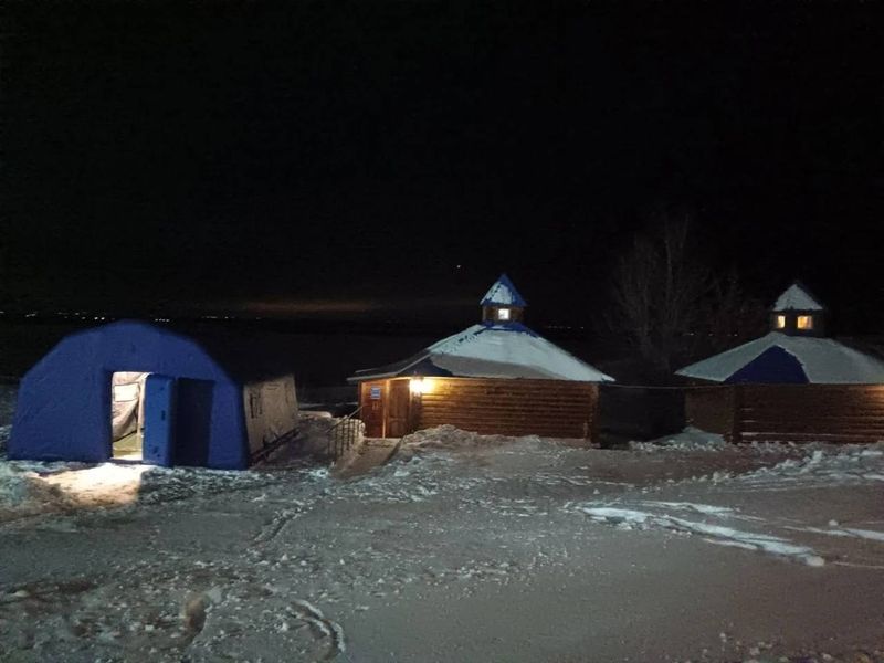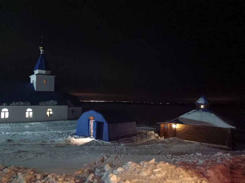 На территории около купели установлена палатка с подогревом для