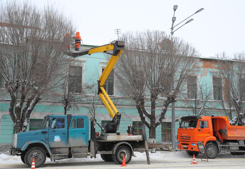 Бригаду, которой руководит мастер МКУ «Благоустройство» Сергей Кузенков, трудно застать на месте. К примеру, в четверг, 11 марта, ее специалисты работали в Центральном районе, производя обрезку тополей на улице Урицкого. А на следующий день они трудились уже на окраине города, занимаясь сносом аварийного карагача на улице Нефтепроводной. Дело это, конечно, непростое. Хотя на календаре весна, мороз никак не сдает своих позиций. На высоте 20 метров (куда приходится подниматься коммунальщикам) он чувствуется особенно сильно. Если наблюдать за обрезкой или кронированием деревьев снизу, с земли, постороннему человеку происходящее покажется быстрым, ловким процессом. В действительности же эта четкость действий (в том числе в условиях низких температур) - результат опыта и профессионализма.