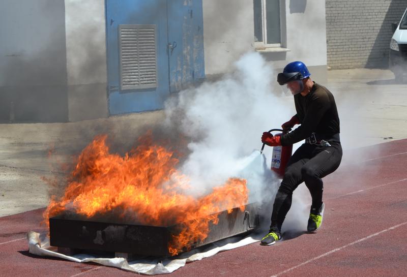 В первый день чемпионата проводились 2 вида состязаний – подъём по штурмовой лестнице в окно 4-го этажа учебной башни и боевое развертывание.