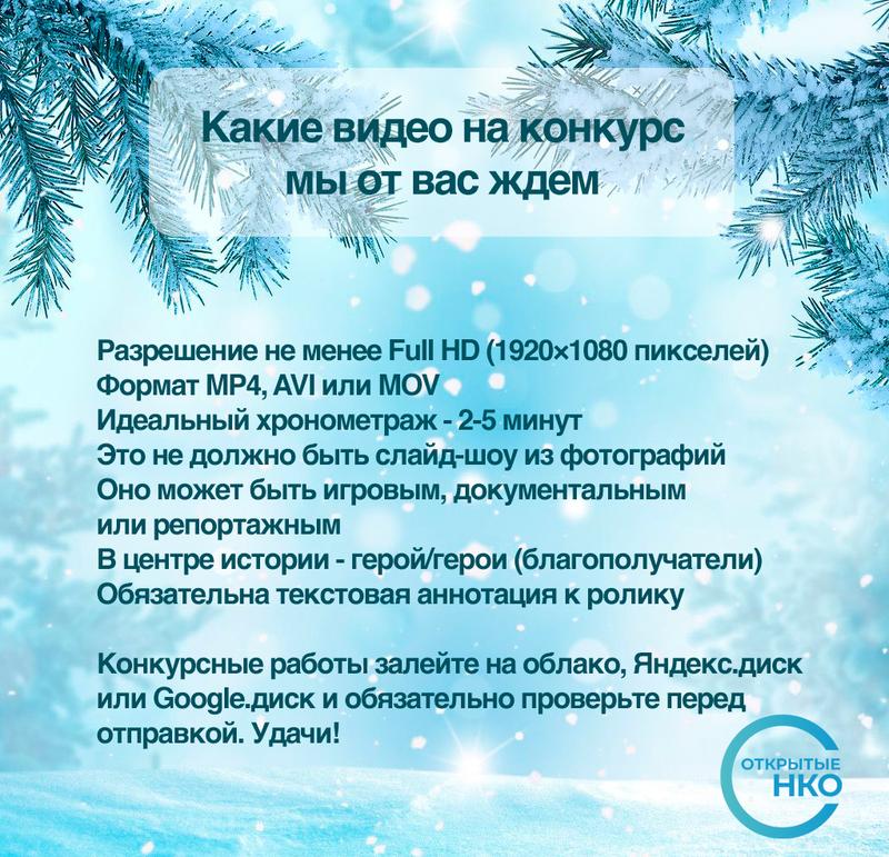Куда и как отправлять материалы: свои работы необходимо загрузить на облако (Яндекс.диск, Google.диск) и отправить ссылку на почту all@dobro.live с пометкой «Конкурс «Зимняя сказка». Также необходимо прислать сопроводительный текст к видео-истории (1-2 абзаца). Обязательно укажите название организации и регион.