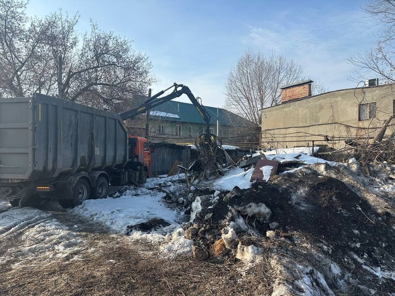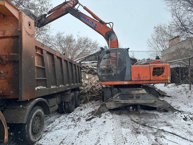 Благодаря технике, был быстро сломан старый барак и ветхие сараи. Работа