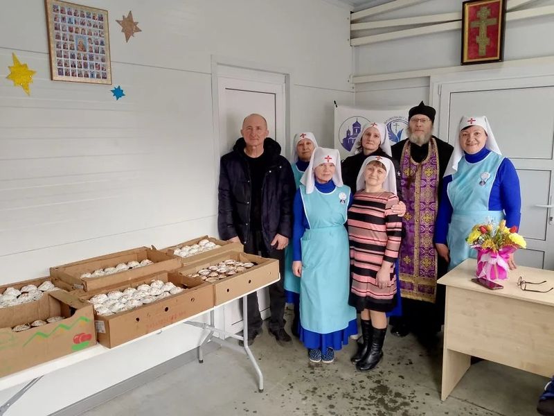 Перед Пасхой Гуманитарный центр «Добрая Сызрань» получил подарок от благотворителей своим подопечным - людям, попавшим в трудную жизненную ситуацию. Подарок предназначался многодетным семьям, инвалидам, одиноким пожилым людям. Благотворитель привез в гуманитарный центр румяные куличи. Оставалось их освятить - это сделал духовник Сретенской общины милосердия иерей Евгений Нефедов. Он также освятил помещение центра. В подарочной упаковке (постарались волонтеры) куличи отправились по домам к тем, кому помогают добровольцы «Доброй Сызрани». Для волонтеров это, в сущности, рядовая работа - а на днях, по их признанию, центр «гудел».