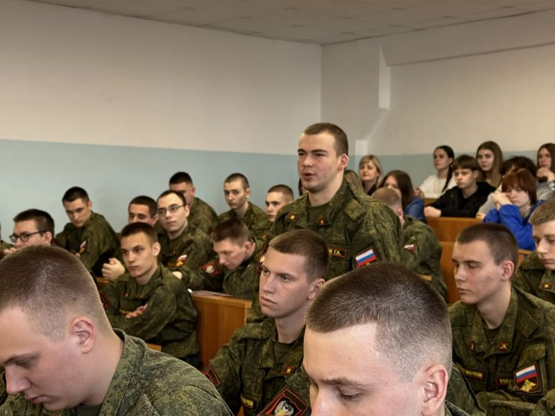 Первый час был посвящен судьбам самих ветеранов. Студенты военной кафедры, активисты «Молодой гвардии» не стушевались при виде мужчин в орденах, ведь разница в возрасте с героями наших дней не такая уж и большая. У многих студентов есть старшие братья, которые также сегодня находятся в зоне СВО. Но вопросы все-таки задавали о том, что действительно интересовало: можно ли было избежать СВО, что значит быть ополченцем, как получали позывные во время мобилизации и как на фронте помогает вера?