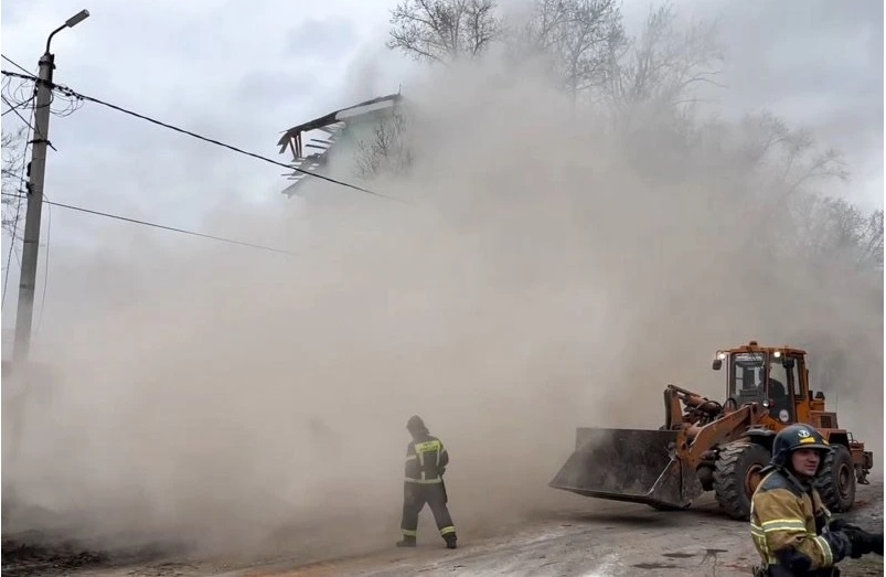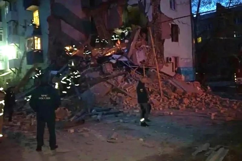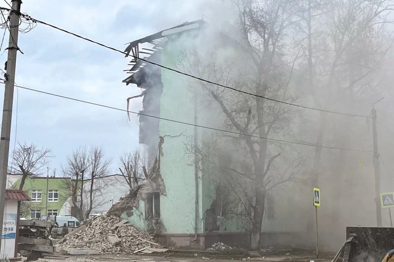результате атаки БПЛА произошло обрушение одного подъезда дома по улице