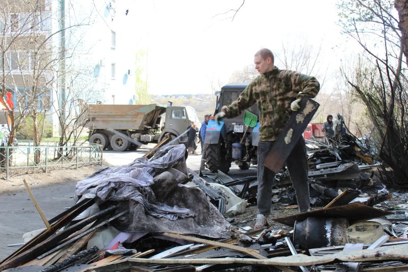 Жители Юго-Западного района вышли на уборку после атаки БПЛА