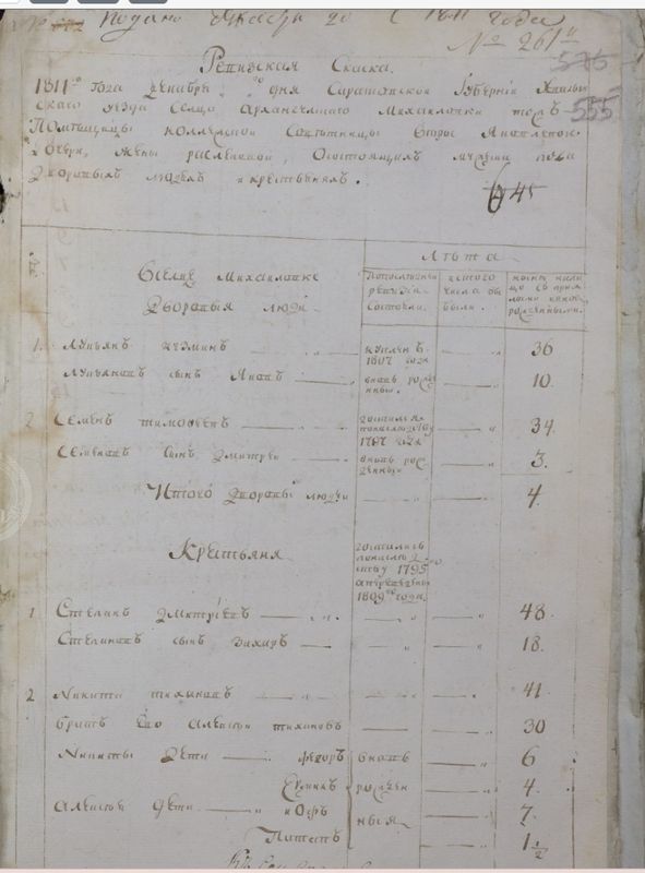 называемые ревизские сказки (документ с результатами переписи населения,