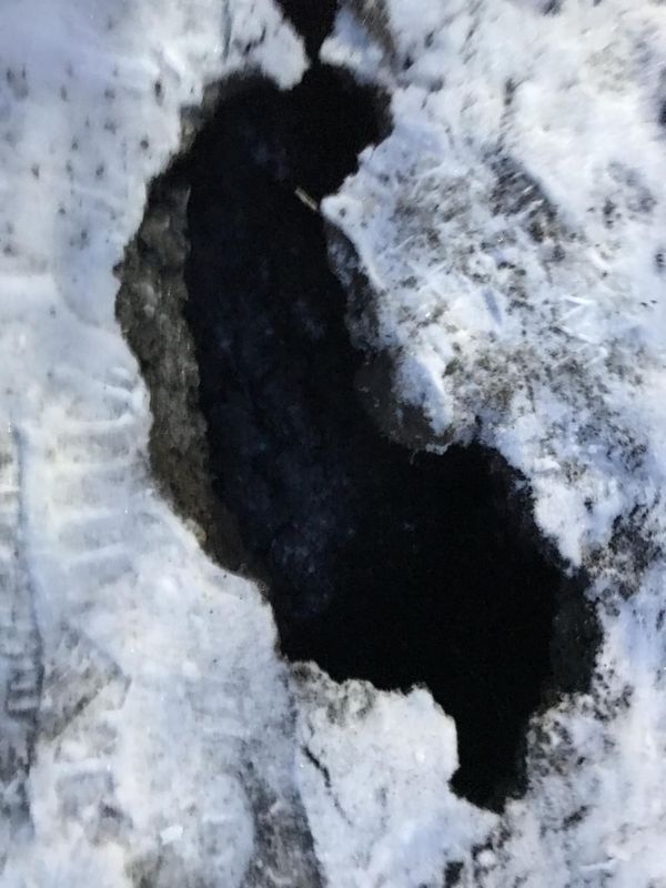 Вскоре после этого, к дому №4 приехали коммунальщики и засыпали провал землей. Работы были выполнены 7 февраля, а вскоре дыра проглотила насыпанный над ней бугор земли, так как внизу находилась полая пустота, и провал появился снова. Но на этот раз, как уверяет автор обращения, он стал еще больше.