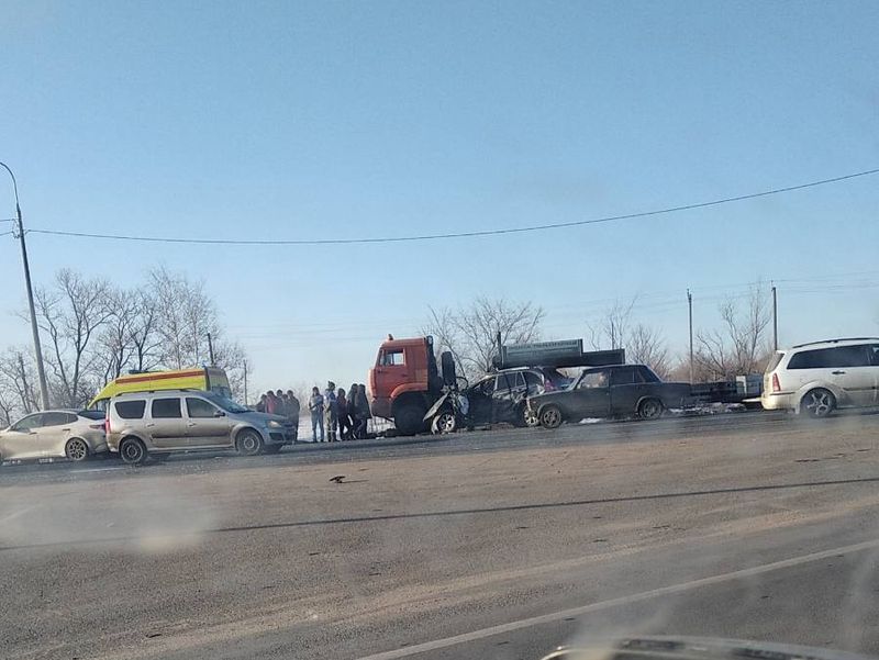 Сегодня на трассе М-5 под Сызранью произошло жесткое столкновение. По предварительной информации, на шигонском перекрестке внедорожник влетел под большегруз - Камаз с полуприцепом-платформой. Не исключено, что в ДТП могли участвовать другие транспортные средства. Обстоятельства столкновении устанавливаются. Однако, судя по снимкам от очевидцев, выложенным в соцсетях, внедорожник получил серьезные повреждения, причем как передней части кузова, так и с боков. К месту прибыла карета скорой помощи. Сообщения о возможных пострадавших в этом ДТП пока не поступали. Проезд в месте аварии частично затруднен в сторону Москвы.