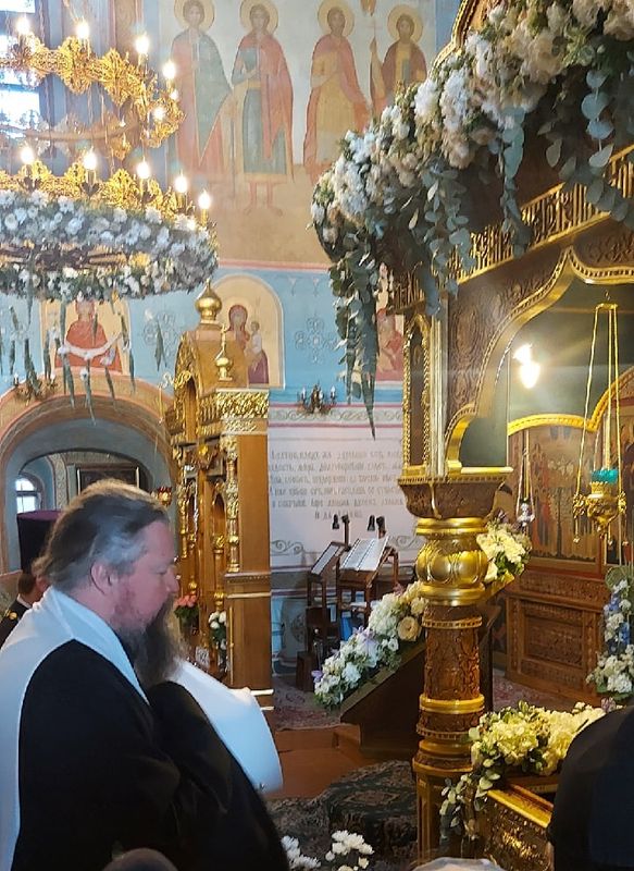 «Божественную литургию в Троицком храме монастыря отслужил митрополит Воскресенский, управляющий делами Московской Патриархии Высокопреосвященнейший Дионисий. Так что, стать частью подобного события - отдельная радость для приехавших в Муром гостей, - поведал отец Александр. - Кроме того, огромной благодати было удостоено шесть пар, которые намерены обвенчаться в ближайшее время - они испросили благословение на брак у владыки Дионисия, а на мощах святых Петра и Февроньи освятили иконы».