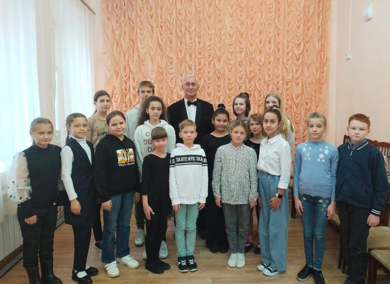 Музыкант, артист, педагог, солист муниципального академического хора «Многолетие» и руководитель камерного хора Октябрьска, Петр Саломатин встретился с учениками и преподавателями Детской школы искусств №1. На встречу пришли дети, занимающиеся хоровым пением. Петр Иванович рассказал об особенностях работы с классикой, современной популярной детской музыкой и с песнями современных композиторов. Ребята узнали, как гость прошел путь от студента Талдыкурганской консерватории в республике Казахстан до артиста и руководителя камерного хора.