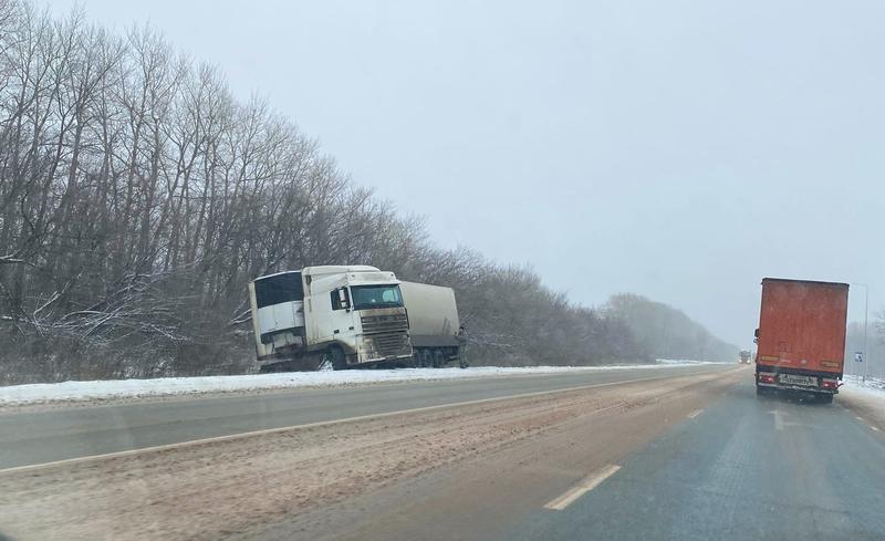 Сегодня, 17 ноября, в условиях снегопада неуютно на дорогах не только легковушкам, но и многотонным фурам. Сразу три похожих ДТП произошли сегодня под Сызранью. Две аварии случились на одном участке - в районе автозаправочной станции «Лукойл» у «октябрьского» выезда на трассу М-5. Там две фуры DAF и Mercedes оказались в кюветах: большегрузы сложились на одном участке дороги длиной буквально в 300 метров. Еще один большегруз слетел с дроги и сложился в районе села Печерского: дорога оказалась непосильной для автомобиля MAN. По предварительной информации, в этих дорожных происшествиях никто не пострадал.
