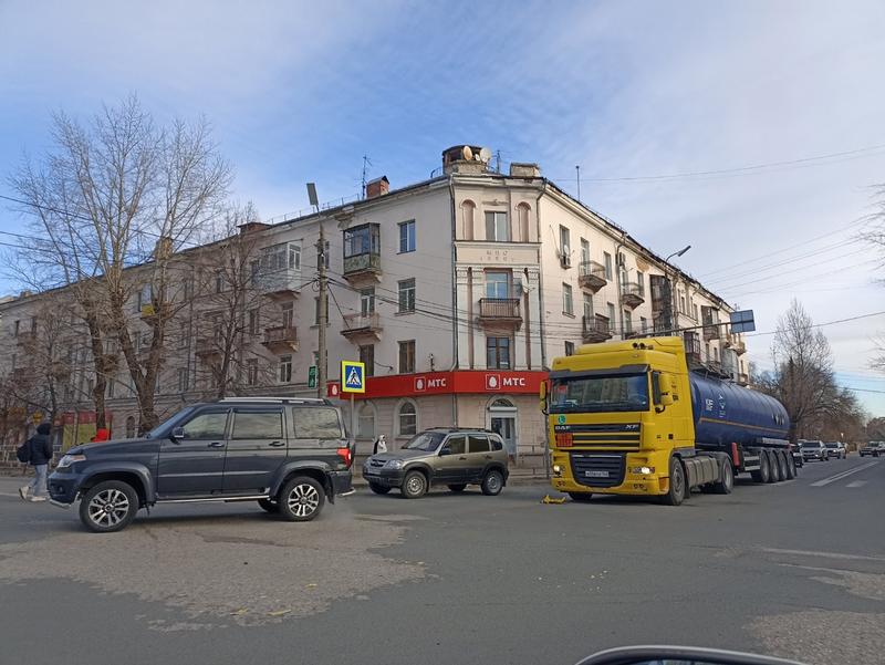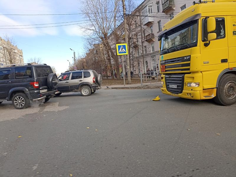 В центре Сызрани столкнулись нефтевоз DAF и УАЗ Патриот, передает с места происшествия корреспондент портала «маленькая Сызрань». Оба автомобиля ехали по улице Фридриха Энгельса в сторону Смирницкой со стороны переулка Волжский, и на перекрестке большегруз догнал Патриот. У большегруза в результате столкновения - поврежден бампер с правой стороны, кусок бампера большегруз потерял. У Патриота поврежден задний бампер с левой стороны. В ДТП никто не пострадал, но автомобили при столкновении затруднили проезд в сторону улицы Московской.