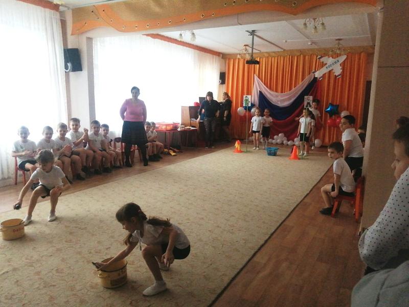 участниками праздника стали отцы детсадовцев. Ребята разделились на две