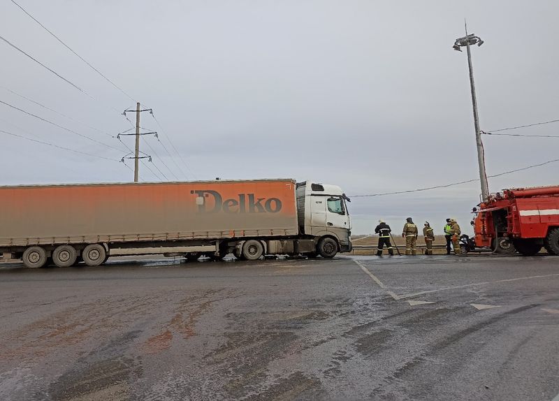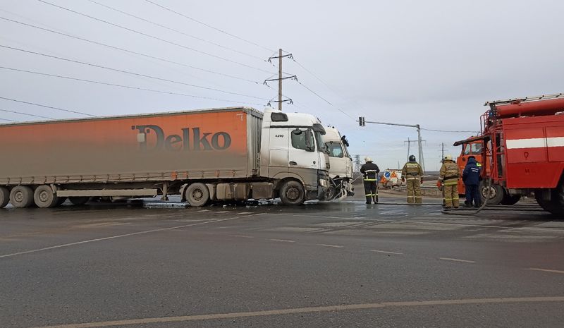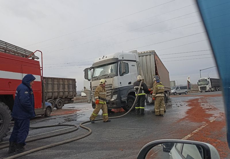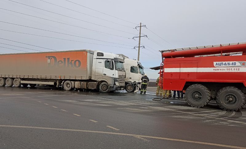 Оба автомобиля ехали со стороны Самары в направлении Москвы. По всей видимости, один из водителей большегруза намеревался либо повернуть, либо развернуться на перекрестке, а второй в это время пошел на обгон. Машины столкнулись передними углами кабин.