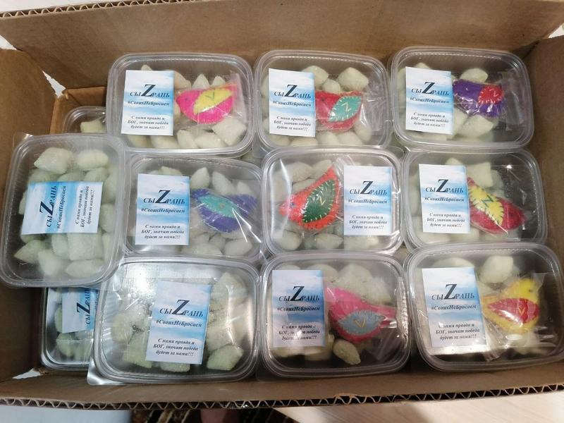 Как рассказала мама девочек, недавно Екатерина сделала бойцам маленький подарок - талисман. Девочка сшила небольших птиц с символическими, понятными каждому россиянину буквами Z и V. «Птички-патриотички» также улетели к нашим бойцам, вместе с переданными Натальей Долговой сладостями. А теперь бойцы получат сердечное видеообращение: для людей, рискующих жизнью, доброе слово, искреннее письмо порой бывает дороже, чем дорогие подарки.