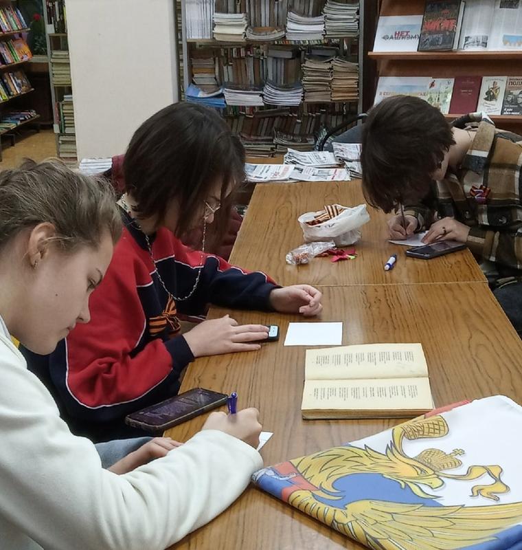 «Солдаты, мы в вас верим, мы любим вас! Спасибо вам за ваш тяжелый труд!» - с такими словами обратились девушки-подростки из Сызрани Юлия Адрахманова, Надежда и Екатерина Швец к бойцам, защищающим интересы России в зоне военной спецоперации на Украине. Девочки - ученицы школ №4, 10 и студентка Губернского колледжа. Как могут подростки, практически еще дети, поддержать воюющих бойцов? - только добрым словом, письмами или видеообращением, искренним участием. Девочки обратились за помощью в библиотеку - филиал №13 на проспекте Королева, где им помогли со съемкой и оформлением видео обращения. А затем видео «полетело» к известной в нашем городе активистке - волонтеру Наталье Долговой, «командиру отряда швей», группы «Шьем Za мир», регулярно отправляющей гуманитарную помощь бойцам из Сызрани и Самарской области. Видео девочек станет одним из самых дорогих подарков бойцам к Дню Победы.