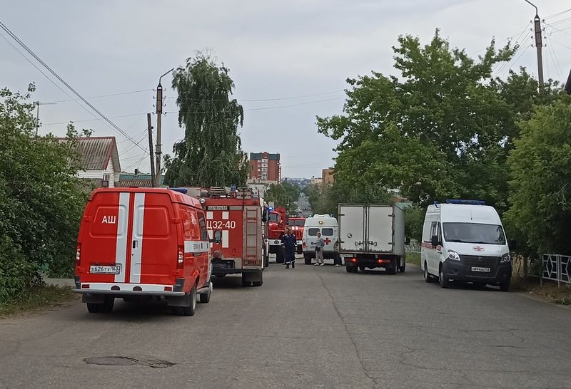 внутри дома. На месте работают пять расчетов противопожарной службы. Для ликвидации последствий пожара перекрыт проезд по улице