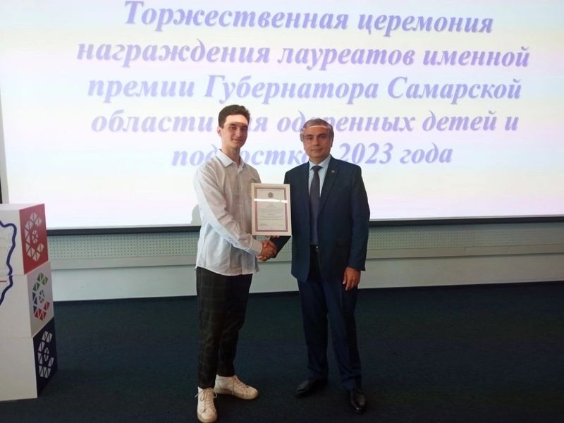 В Самарской области объявили имена лучших учащихся Самарской области в пяти номинациях, которые достигли особых успехов в учебной и исследовательской деятельности, художественном творчестве, любительском спорте, техническом творчестве и социально значимой деятельности, которые стали обладателями именных премий губернатора. Торжественная церемония вручения дипломов лауреатам проходила во Дворце спорта имени Владимира Высоцкого. Одним из лауреатов в номинации «Социально значимая деятельность» стал учащийся школы поселка Варламово Сызранского района Иван Русин. Всего обладателями именных премий губернатора стали 60 человек. Ранее портал «маленькая Сызрань» рассказывал, что награду также получила учащаяся детской школы искусств №1 Сызрани пианистка Диляра Хабибулина.