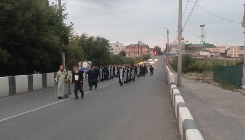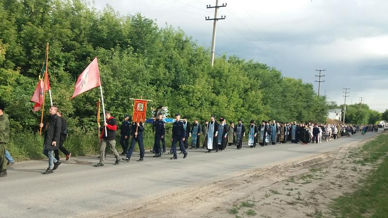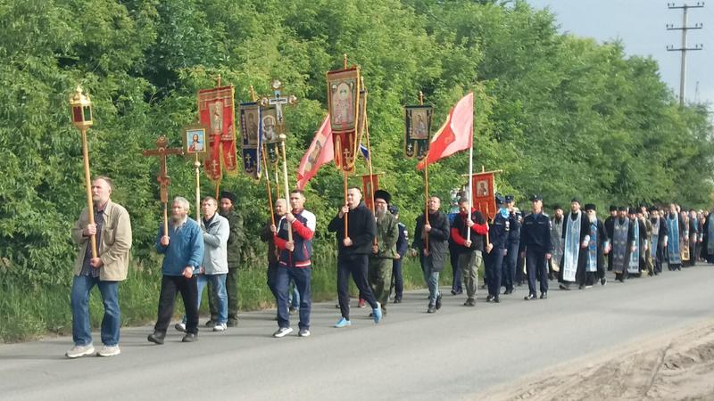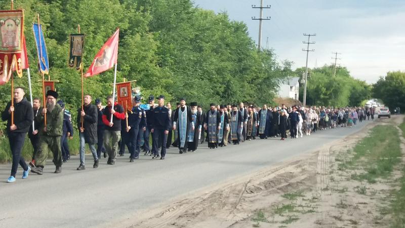 Участники крестного хода проследовали по улице Астраханской к школе искусств и продолжили путь. Некоторые новые участники присоединились к колонне крестного хода в пути. В эти минуты крестный ход идет по улице Жукова и приближается к поселку Елизарова. До кашпирской школы нужно идти без остановки, а от Георгиевской церкви до школы №18 порядка 6 км. Затем - небольшой отдых, где все желающие смогут приложиться к святыне, и дальше по пересеченной местности проследуют до святого источника в поселке Новокашпирский.