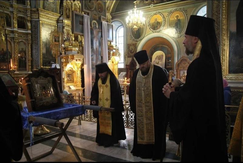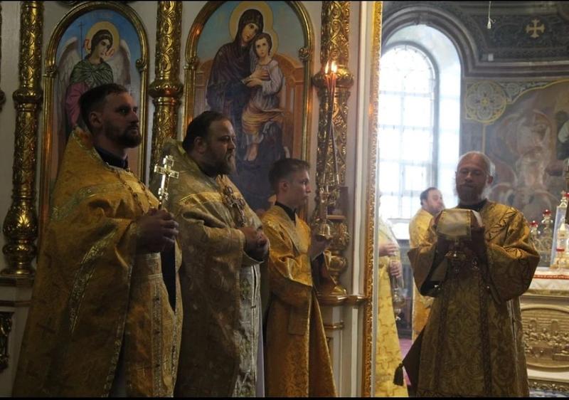 Крестный ход собрал сегодня десятки участников. Он прошел от Казанского собора до мужского монастыря, где епископ Леонтий совершил Божественную Литургию.